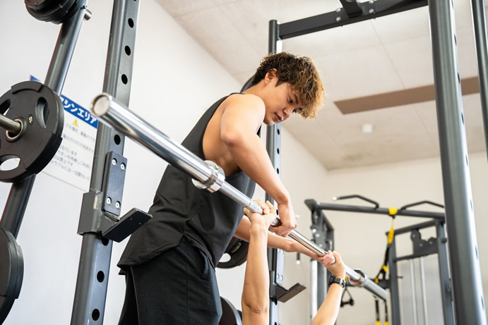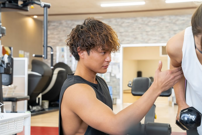 ダンベルやバーベルを使用する「フリーウェイトトレーニング」を中心に、まず身体を美しくみせるために姿勢改善に関わる筋肉トレーニング、そしてお客様の目指すメリハリのある身体を一緒に作り上げていきます。